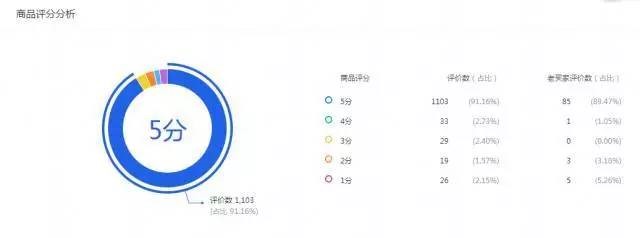 商品评分分析也是一个很重要的指标,因为平时我们没办法看到哪一个买家的评分是如何的,这个不同于中差评,中差评我们还可以看到是哪个买家给我们的,他的评语是什么,但是评分这一项的话是没办法看到具体的。所以当自己店铺评分低的时候,很多人直接认为是那个中差评最多的宝贝产生的。